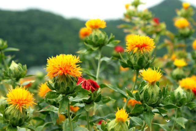 江戸時代から伝わる「紅」(べに)の原料は紅花です。その紅花の原産地は中近東・エジプトといわれ、シルクロードを渡って中国に伝来し、日本には3世紀中頃までには伝わっていたようです。